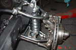 Hier worden de “shocktowers” definitief op hun plaats gelast. Dit is de bovenbevestiging voor de schokdempers met schroefveer.