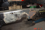 Een stukje chassisbalk verwijderen om het stuurhuis meer ruimte te geven en weer opvullen met een segment van een buis. Dit noemen ze een C-notch.