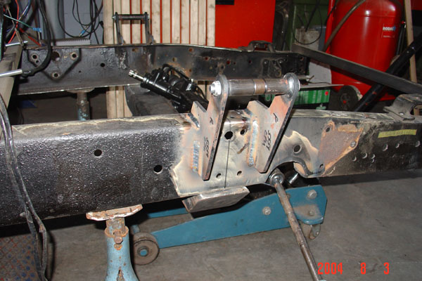 De vooras (crossmember) is uit 8mm kokerprofiel vervaardigd en hier reeds aangebracht.